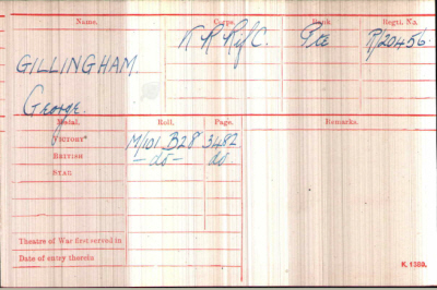 R/20456, Rifleman, George Frederick GILLINGHAM