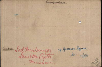 LAMBTON (née Hamilton) at Lambton Castle, County Durham. His mother died 3 days after his birth.