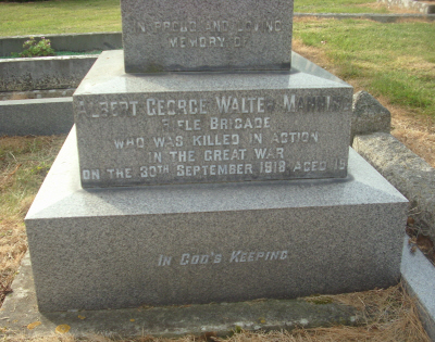 1901 census...Albert [2] was at 'Hillside', Cheveley Road, Newmarket with his father [37], an architect and deputy clerk to the scales, born Newmarket; his mother Mary [31] born Highgate,London and his brother James J [1], born Newmarket. 1911 census...Albert,"Jinks", was a 12 yrs old student at Trent College, Long Eaton, Notts in the 1911 census. His parents were at Esthlon, Bury Road, Newmarket with his sister Rosemary Grace [9] and brother Cedric Rolfe [7] both born in Newmarket. Brother James cannot be found and no children are recorded as dying. |