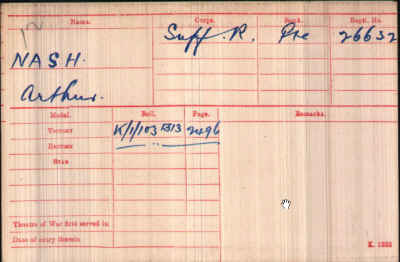 Born in Newmarket in Q3-1878 [Newmarket 3b:548] to Henry and Elizabeth NASH, (née JACOBS) of 3 York Terrace, Exeter Road, Newmarket.