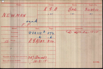 Born in Denham in Q3-1893 [Thingoe 4a:753] to James and Julia NEWMAN (née SMITH) of Denham End, Denham, Suffolk.