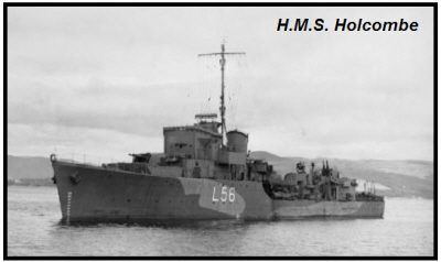 H.M.S. HOLCOMBE was a HUNT Class Escort Destroyer. On 12th December 1943 at 14:45 she was hit by a Gnat torpedo fired from U-boat U-593 and sank in position