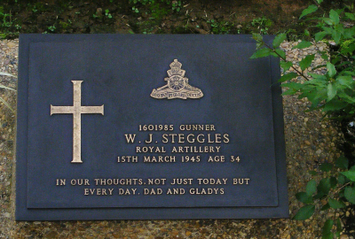 He attested for the Royal Artillery , 1st A.A. Battery, in 1940. By March 1945 the Japanese were in retreat in Burma, the Allies making use of Karen guerillas to delay them with ambush after ambush. The race was on to re-take Rangoon before the monsoon, and it was, on May 3rd. Exactly where they were when William Steggles was killed in not known. William was originally buried in Mandalay War Cemetery but moved in 1950's when permanent maintenance there was no longer possible |