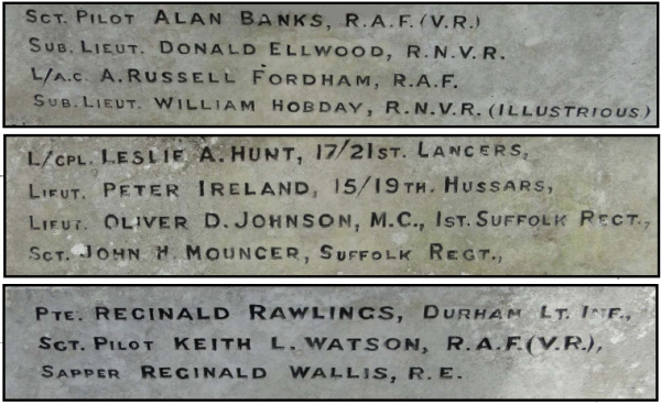 Built by Messrs G.Neville and Sons, Mildenhall and unveiled on 28th December 1920 by Capt Owen Clarke OBE, dedicated by Rev.Henry Cope.