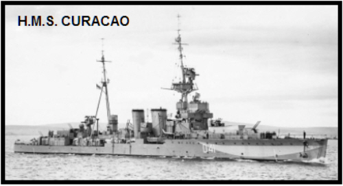 The Royal Navy Anti Aircraft Cruiser HMS Curacoa was escorting the RMS Queen Mary, which was carrying 15,000 United States troops on board, and sailing ahead of her. They were close to the Irish coast, and the Queen Mary was zigzagging to avoid German U-boats. The Queen Mary collided with HMS Curacoa at a speed of about 28 knots and cut her in half. The Curacoa sank with 338 casualties. (28 survivors) 50.50N 8.38W.