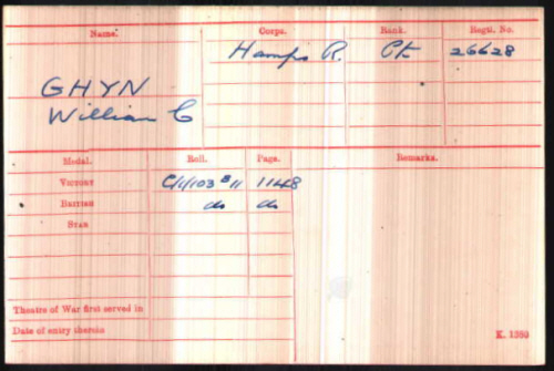 Sarah HAMMOND married Alfred GINN in 1880 (Risbridge Q4) The Richard Charles GHYN recorded by CWGC was due to the fact that his father was variously