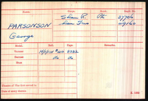 George Parsonson was born in Clare ( Risbridge Q4-1883 4A:596), son of James H and Ellen PARSONSON (née WALFORD).