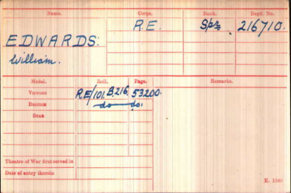 William Edwards was born in 1880 in Halstead (3rd qtr 1880 Halstead 4a:449), son of William and Elizabeth EDWARDS (née WELCH).