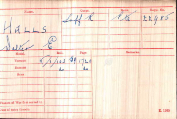 No.22985, Private, Walter Ernest HALLS