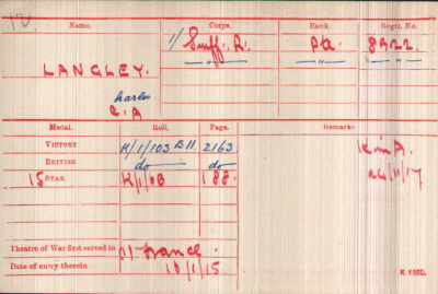 Charles Albert Langley was born in 1895 in Ashley (Newmarket Q2-1895 3B:518), son of William and Louisa LANGLEY(née SERJEANT).