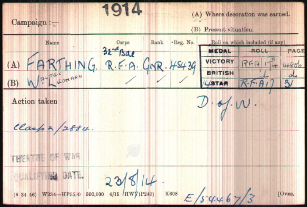 No.45439, Gunner, Walter Leonard FARTHING