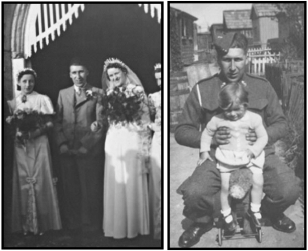Eric George POOLE was born in Haverhill on 3rd June 1915 (Risbridge Q3-1915 4A:1544), son of Frank and Edith Webb POOLE (née PLUMB). Eric met Dorothy Ruth Smith, always known as Ruth, daughter of George and Beatrice, née Hughes. They were married at Hundon church on 28th October 1938, with Ruth's sisters Mona and Doreen as bridesmaids, the reception was held in the Hundon Church School Room. They set up home at 52 Mill Road, Haverhill, where Ann was born and lived, until she married Alex Chapman of Castle Camps. Ann was a tailoress, adding "we all worked at Gurteens, I was there for 41 years". Ann (pictured below with her father) recalls: "Dad was supposed to be in the Suffolks, but caught scarlet fever and went into the Isolation Hospital up Clements Lane. He eventually joined the Kent Yeomanry". In the 1939 register, at 52 Mill Road, Haverhill, were Eric, a GPO night mail driver and his wife Dorothy R [13-8-1915]. His parents were at 15 Recreation Road, Haverhill. |