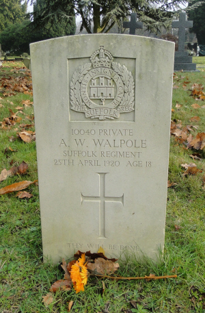 Arthur William Walpole was born in Norwich on 20th June 1901 (3rd qtr 1901 Norwich 4b:120 ) son of Richard and Eliza WALPOLE (née GODDARD). His mother