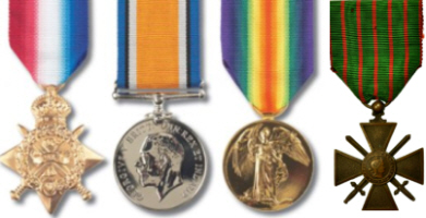 He enlisted in Winchester when resident in Bournemouth. The right hand medal shown is the French Croix de Guerre, for which John was gazetted on 9th December 1916. Badge for 14th Reserve Cavalry Regiment not found, they existed only to train troops for other units. Badge shown is actually a shoulder title for 4th Nigeria Regiment No information found regarding where John died. His name on the Pakenham memorial seems to rely on the fact that his father was the vicar at the time. It was not unusual in those days for a vicar, having a relative killed in the war, to have the name recorded on the parish war memorial.