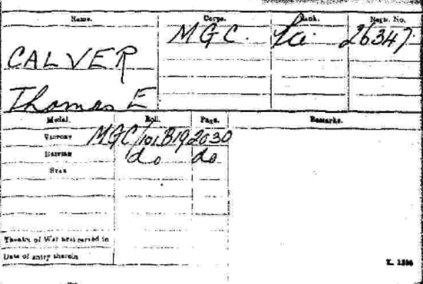 Thomas Edward Calver was born in Ixworth on 29th December 1892 (1st qtr 1893 Thingoe 4a:788) son of Thomas and Eliza CALVER (née PAYNE).