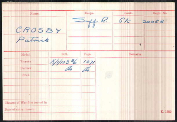 No.20058, Private, Patrick CROSBY