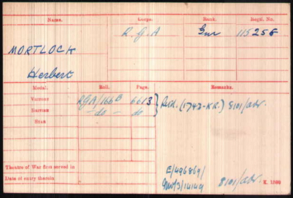 Herbert MORTLOCK was born in Shimpling (3rd qtr 1879 Sudbury 4a:526) son of Charles and Ann Sarah MORTLOCK (née DRAKE)