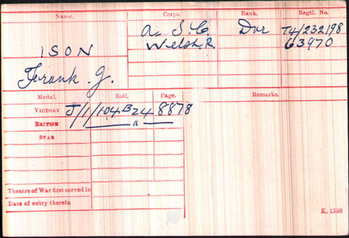 No.63970, Private, Frank Joseph ISON