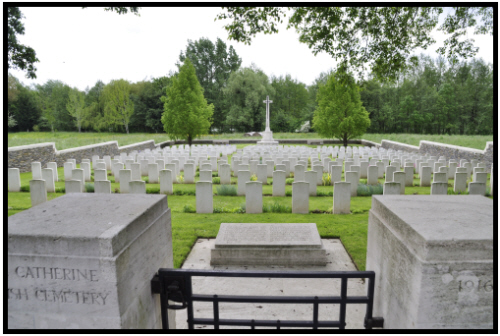 Yellow cross- where Arthur was found photo: Rodney Gibson photo:Rodney Gibson click here to go to the Commonwealth War Graves Commission website for full cemetery/memorial details |