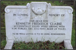 The 8th Suffolks were a training battalion and saw no active service, but sent a great number of drafts abroad. Unless Kenneth's death certificate or his service records (or a friendly relative) appear, we cannot say how he died. His gravestone does however say it was an accident. He appears to be the Kenneth Frederick Clarke who died in Colchester (Q1-1941 4A:1769) which suggests he was stationed in Colchester. |