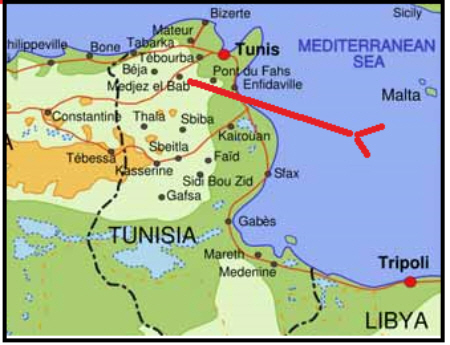 On the 1st February 1943, the 142 Regiment, Royal Armoured Corps (Churchill tanks) landed at Algiers as part of 1st Army. Seven of the unit were killed that day, all are named on the Medjez-el-Bab Memorial