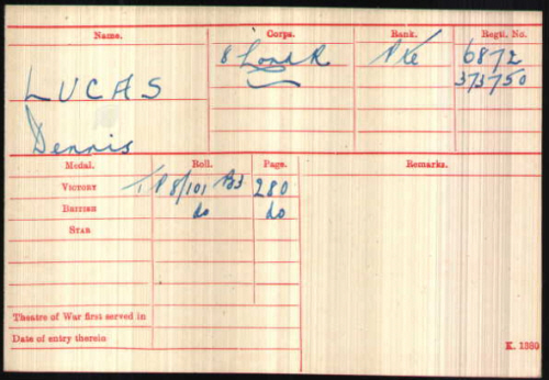 Dennis Lucas was born in West Wickham in 1879 (Linton Q4-1879 3B:513) baptised on 20th June 1880 in West Wickham, son of Charles and Mary Anne LUCAS (née CUTTER).