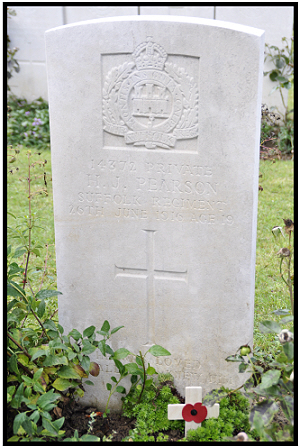 Most likely to be: Horace John Pearson, born in Stetchworth in 1896 (Newmarket Q4-1896 3B:512), son of Clemence and Henrietta Julia PEARSON (née HAMMOND). 1901 census...Aged 4, he was at Mill Road, Stetchworth, with his father Clemence PEARSON [30] carpenter, born Thetford; his mother Henrietta J [34], born in Sawston and brother Harry [7] born in Dullingham. 1911 census...Aged 14, he was at Tea Kettle Lane, Mill Road, Stetchworth, still with his parents and brother Harry, (a gamekeeper). Quite when he became associated with Westley Waterless is unknown, but his parents later moved to Station Road, Dullingham. |