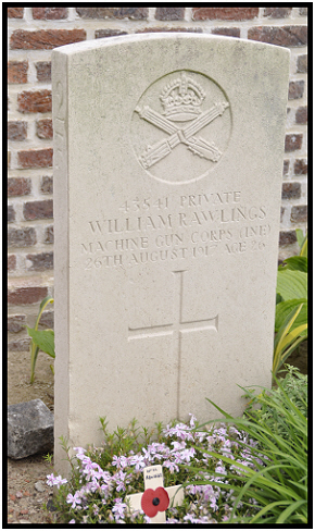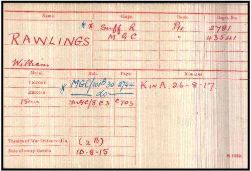 William Rawlings was born in Baythorne End, Birdbrook (Risbridge Q2-1891 4A:375), baptised in St Leonards, Wixoe on 11th October 1891, son of John Robert
