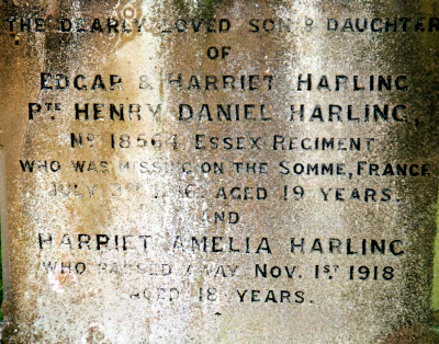 Henry Harling is commemorated on the Thiepval MemoriaL, pier and face 10D