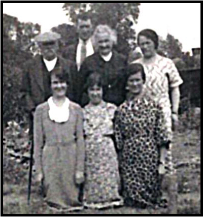 Victor at back, father, mother and sister Elsie, in front sisters Effie, Ruth and Olive