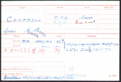Colin Archibald Heron Campbell was born in Portsmouth (Portsea Island Q2-1880 2B:505) on 27th March 1880, son of Lt.Col. Donald Archibald and Charlotte CAMPBELL(née ROBERTS).