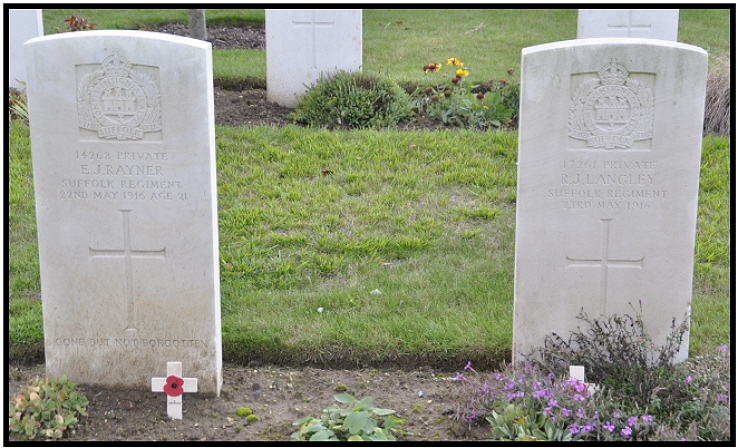 Dying from his wounds it is almost impossible without his Army records to say where or when he was wounded. The 11th Suffolk were in reserve in May