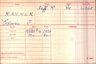 No. 14268, Private, Edwin James RAYNER