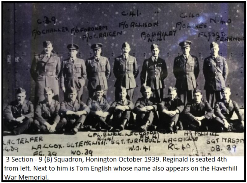 February 1939, No.9 Squadron moved to Honington and received Vickers Wellingtons, and was involved in anti-shipping sorties. Their losses on these missions increased until the decision was made to convert to night time operations, too late for Reginald though.