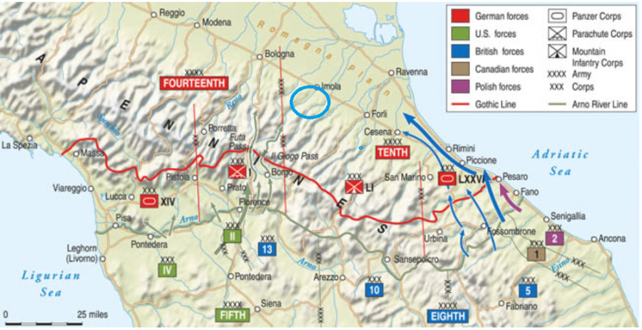 26 June 1941 Enlisted Royal Artillery, 10th Light Anti Aircraft Regiment 25 Nov.1941 posted to 205th (Mixed) Heavy Anti Aircraft Regiment 29 Dec.1941 posted to 495 Heavy Anti Aircrat Regiment 2 Feb.1942 posted to 143 Heavy Anti Aircraft Regiment 7 Oct.1943 attached 51 Primary Training Wing 2 Oct.1943 transferred to Suffolk Regt and posted to No 3 Infantry Training Centre 1 Feb.1944 posted to 8th Battalion, Suffolk Regiment 27 May 1944 transferred to Queen's Own Royal West Kent Regiment and posted to 6th Battalion From 2nd May to 16th July 1944, Bertie served overseas with the North Africa Force, followed by two months in the Middle East. From 7th September 1944, his battalion saw action with the Central Mediterranean Force. As the Allies moved up from the toe of Italy, Bertie saw action at Monte Cassino, which was fought over four main battles between 17th January and 18th May 1944. In the period from June to August 1944, the Allies advanced beyond Rome, taking Florence and closing up on the Gothic Line. This last major defensive line ran from the coast some 30 miles (48 km) north of Pisa, along the jagged Apennine Mountains range between Florence and Bologna to the Adriatic coast, just south of Rimini. During the advance from Rimini to Forli and beyond in SeptemberNovember 1944, advances crossed one flooded river after another in atrocious autumn weather. Bertie Reggie lost his life on 15th November 1944. Sister in law, Ann, recalls that Bertie and two companions were in a trench when it was hit by enemy fire. The graves of Bertie and Pte Fullarton, both of the 6th Queen's Own Royal West Kent Regiment, are in the Faenza War Cemetery near Florence.