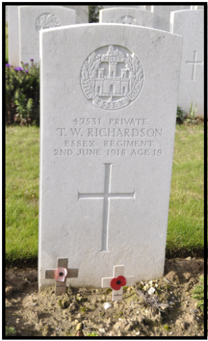 Thomas William RICHARDSON was born at 6 Chauntry Row, Haverhill on 20th July 1898(Risbridge Q3-1898 4A:778), baptised in St.Mary's, Haverhill on