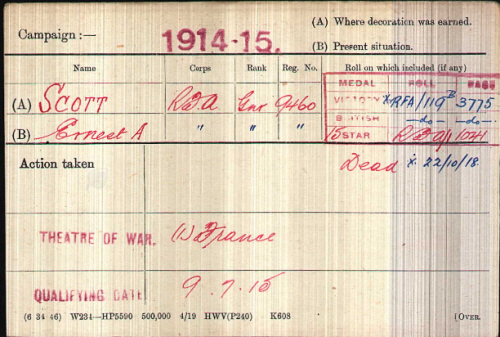 No.9460, Gunner, Ernest Albert SCOTT