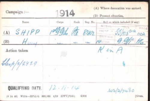 Henry SHIPP was born in Haverhill on 25th July 1881, (Risbridge Q3-1881 4A:519),son of George and Elizabeth SHIPP (née WHITING). His mother was just
