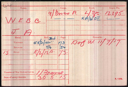 No. 12295, Company Sergeant Major, James Alfred WEBB