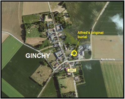 Enlisted in Coventry. It was during the battle around the Flers-Ginchy road, at Ginchy Wood. The Battalion war diary has a brief entry "16 September 1916 - After a fairly quiet night the enemy shelled our position and lines in near continuously throughout the day. Infantry on our flanks attacked the German line with moderate success." In fact they had heavy losses on 16th, 116 killed of which 80 have no known grave. 21 Officers and men were buried in Guards Burial Ground, Ginchy. Alfred appears to have been one of them. They were moved in 1919 to their present resting place. |