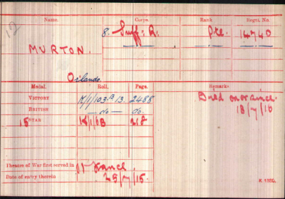 Orlando Murton was born in Haughley in 1891 (Stow Q2-1891 4A:836). He was the son of Orlando and Maria MURTON (née HART).