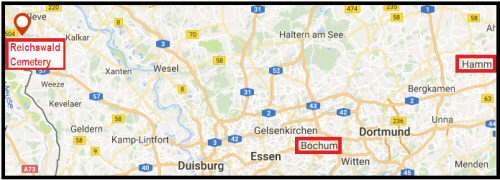 All the crew were buried initially in a collective grave 28:A:55 at Bochum Cemetery, but exhumed and re-interred in Reichswald on 9th June 1947.