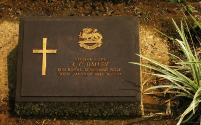 The Veterans' Website Project and www.thewardrobe.org.uk/research/ gives this much: Reginald was a member of B Company, and commander of 6 Platoon, under the late Col. John Hill. "Photo SBYRW 41175..2nd Bn., Royal Berkshire Regiment - A sepia digital image of a group of soldiers of 'B' Company in India during the 2nd World War. L/Corporal 5120749 Arthur Stocks is standing at the back, on the right of the middle row is a soldier we believe to be named as Bailey, and the soldier sat in the middle front is Private 14340725 Dodd who was awarded a Military Medal in Burma and who was killed in action at Mandalay on the 10th March 1945. [We believe Bailey was Corporal 5339884 Bailey who was killed in action at Kabwet on the 30th January 1945]. 30 January 1945: Statement: After we took Hill 15R at Kabwet, we were sitting at the top of the hill having a cigarette and a sniper, from where I don't know, shot L/Cpl.[Bailey?] who was sitting beside me. |