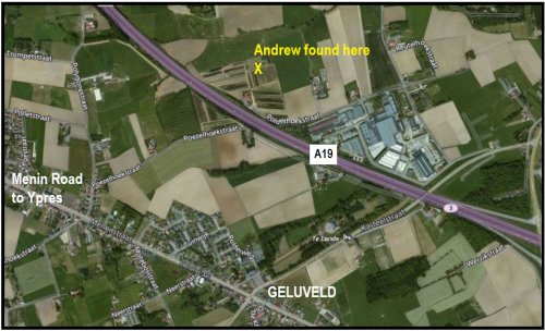 photo: Michael J. Pettitt Andrew was found here, identified by his discs, and removed to Hooge Crater in 1919 photo: Michael J. Pettitt