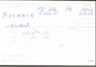 No.32663, Private, Andrew Martin BREMBER