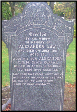 Born at 72 Foulford Road, Cowdenbeath on 7th October 1911, to Alexander Watson and Marion Noble LAW. He appears to be the son of Alexander and Marion Auchter?..Hislop LAW (née POLLOCK). Father was a coal miner who died before the birth of his son. The memorial headstone details match what Scottish records have been seen. A police constable, in the 1939 register, he lived at 127 New Cheveley Road, Newmarket with his wife Ada Laura PETCH [2-5-1914]. She later married Kenneth G.SMITH (Newmarket 1964) |