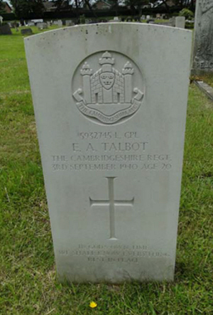 Lance-Corporal Eric Arthur Talbot of "D" Company, 1st Battalion, Cambridgeshire Regiment was drowned on the East Coast on September 3rd. Lce-Cpl Talbot was the son of Mr. and Mrs. Theodore Talbot, 1 Kimberley Terrace, Newmarket and was only 20 years of age. In a letter to his father, Capt J.R.Ennion says: "As your son's Company Commander for several years I am writing to express to you and your wife the very deep sympathy of all the officers, NCOs and men of the Company, especially the Newmarket men, in the great loss you have suffered through his untimely death. He had recently been made a Lce-Corpl, and I regarded him as one of the most promising of my junior NCOs, as he always set a good example by his smartness, keenness and general good behaviour.
