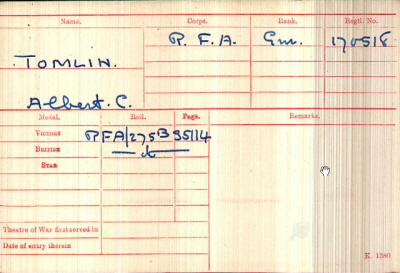 Charles Albert TOMLIN, born in Ipswich in Q3-1894 [Ipswich 4a:846], the 2nd son of Arthur and Ellen TOMLIN (née RICHARDSON), of
