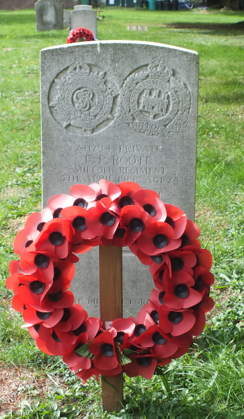 1881 census...Aged 2, he was at Clay Street, Soham with his father Francis ROOTE [30] horsekeeper born Soham, and his mother Mary [26] born Soham. 1891 census...Aged 12, he was at Clay Street, Soham, with his parents (father now a builder's labourer);brother Theophilus [7]; sisters Maud [10], Annie E [5] and Elizabeth M. [1]. All the children were born in Soham. 1901 census...Not yet found in this census His parents were at Paddock Street, Soham ( father a horse keeper/builder); brother Theophilus F, (butcher's assistant), Frank [5]; sisters Elizabeth and Doris M [2], born in Soham. 1911 census...Not found in this census. His parents; brother Frank (errand boy at boot shop) and sister Doris (scholar) were at Paddock Street, Soham. His younger brother Frank Phillip ROOTE died at home after Army discharge with TB. They are buried together in Soham Cemetery with a double headstone see here |