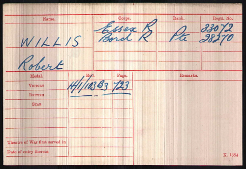 Robert WILLIS was born in Steeple Bumpstead (Risbridge Q1-1897 4A:770), son of Harry and Matilda WILLIS (née WRIGHT).